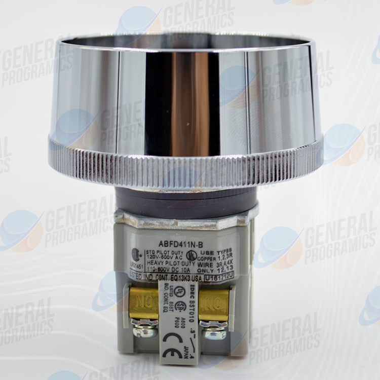 El ABFD411N-B es un interruptor de botón pulsador industrial de la serie TWND de IDEC, caracterizado por su diseño robusto y su gran cabezal tipo hongo con protección adicional.